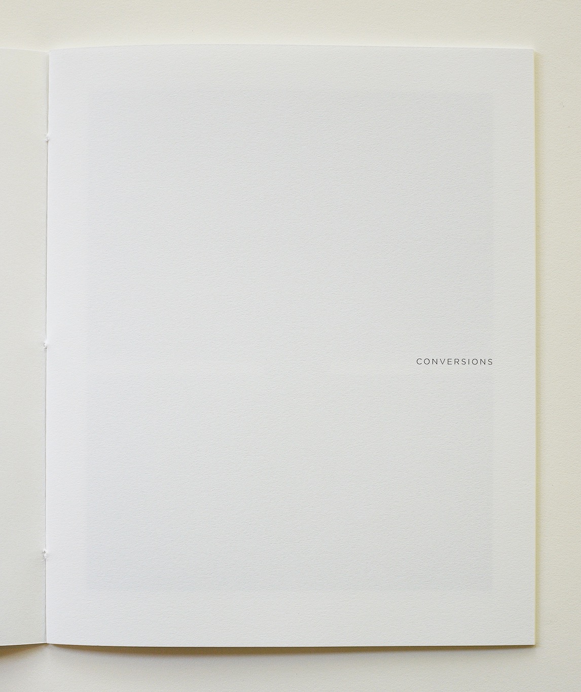 CONVERSIONS: 8.5 x 7 inches | 24 pages | 9 images | 2 color offset | Hand sewn | Saddle stitched | Self cover |